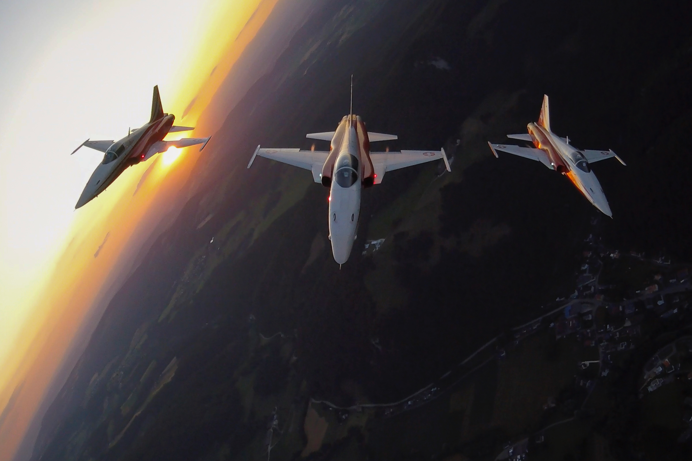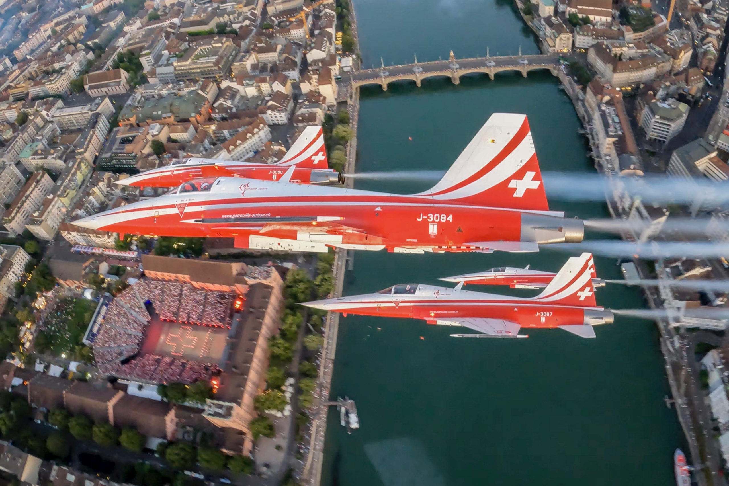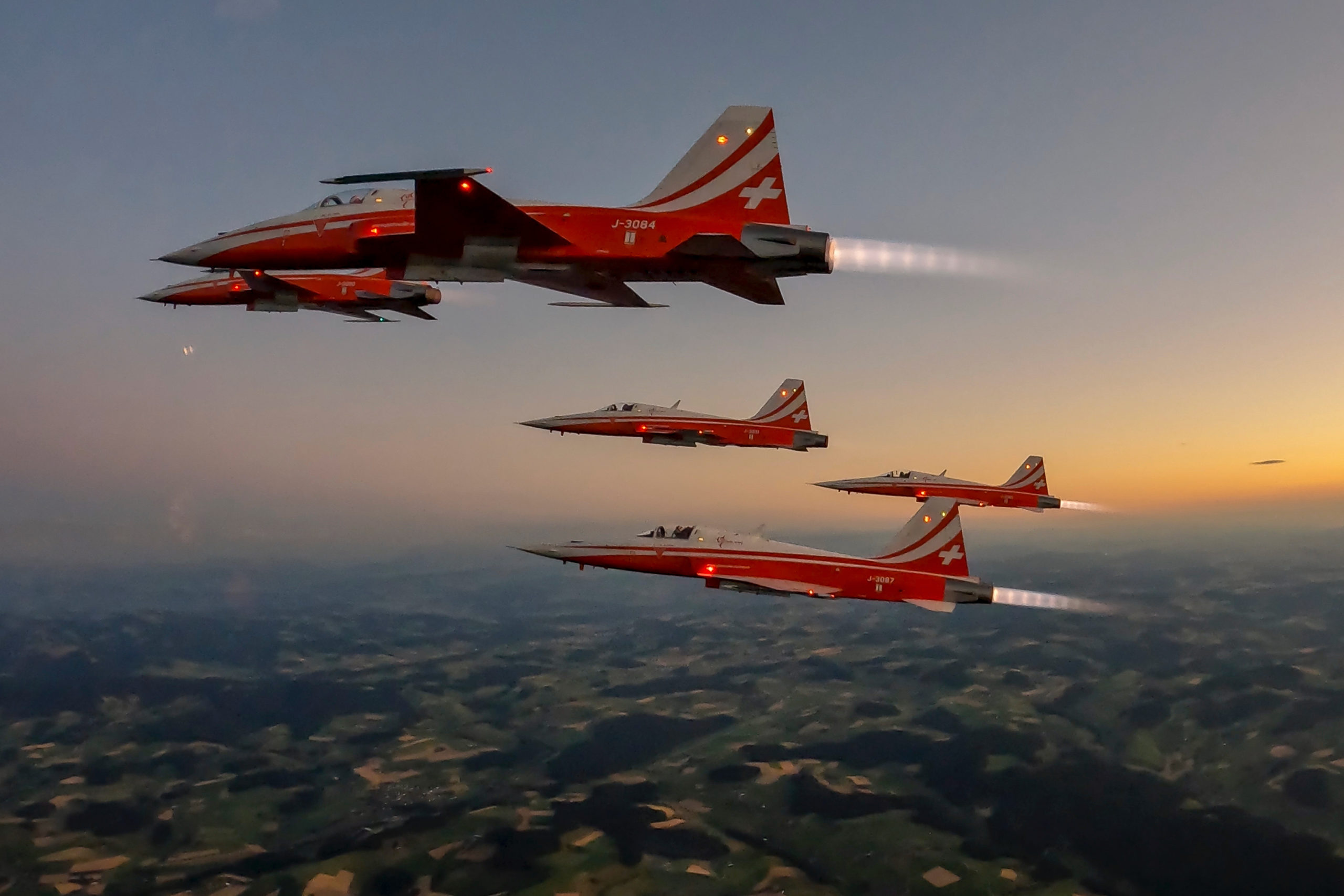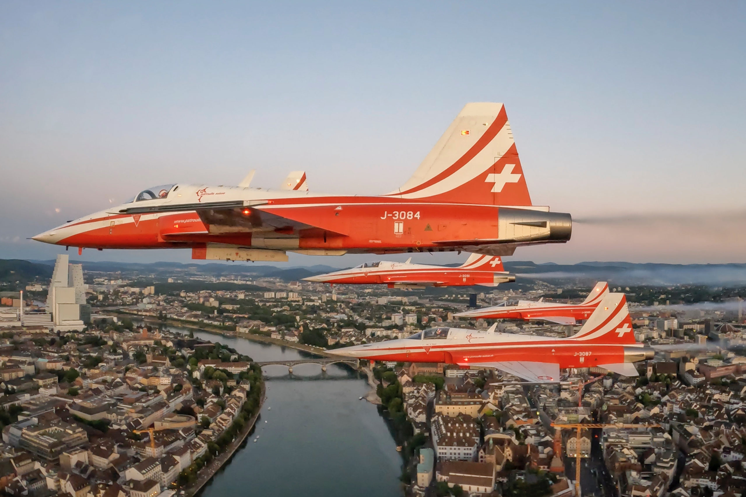 La Patrouille Suisse au-dessus de Bâle pour le Basel Tattoo 2025 — Instantanés d’un spectacle magique de précision, de lumière et d’émotion. Au soir du Basel Tattoo 2025, alors que le soleil glissait lentement derrière les toits de Bâle, la Patrouille Suisse a offert un moment suspendu dans le temps. Dans une lumière dorée presque irréelle, les six F5-Tiger ont fendu le ciel avec précision, traçant des lignes parfaites au-dessus de la ville en fête. Les images inédites capturées au coucher du soleil révèlent toute la poésie de cet instant : les reflets chauds du crépuscule sur les fuselages, les silhouettes acrobatiques découpées sur un ciel embrasé, et cette impression unique d’assister à quelque chose de rare et d’intense — l’alliance parfaite de la maîtrise, de la tradition et du spectacle. Pour ceux qui étaient présents, le temps s’est arrêté. Pour ceux qui découvriront ces images, il se figera à nouveau.